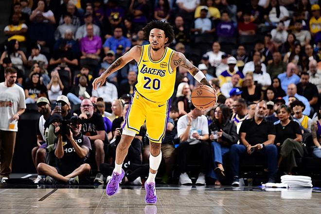 季前赛至今,史密斯在前4场比赛中的场均出场时间达到了13分钟,场均数据为7.5分1篮板1.3助攻0.3盖帽,还有0.5次失误和1.3次犯规,投篮命中率47.8%,三分命中率30%,罚球命中率62.5%。史密斯在这几场比赛中的整体表现还算是中规中矩,他的进攻效率还算是比较稳定的,他也能够在出场时间有限的情况下在进攻端制造一定的威胁,而且看起来他也是在相应调整自己的进攻选择的。史密斯曾经是2022届排名全美前3位的顶级五星高中生,他的天赋和潜力都是有目共睹的。如果他能够在湖人稳步提升自己的水平,再加上他也依然年轻,他也许还是有机会成为一名合格的轮换球员的。