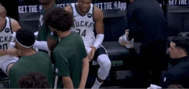 字母哥首节比赛过程中,一度下场更换球鞋。