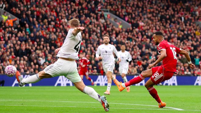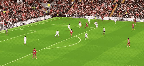 第21分钟,利物浦打出快速反击,索博斯洛伊的传球打开局面,萨拉赫传球过渡,加克波的射门击中立柱,弹了出来。
