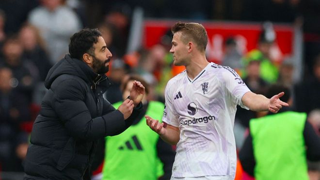 曼联首发:31-拉门斯、2-达洛特、4-德里赫特、5-马奎尔、23-卢克-肖、16-阿玛德、8-B费、18-卡塞米罗、10-库尼亚、19-姆伯莫、7-芒特。