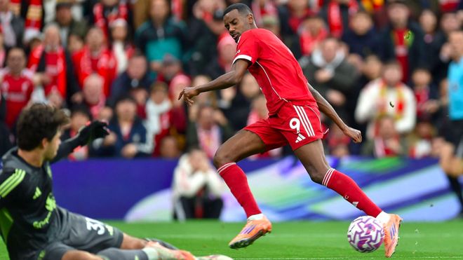 第35分钟,利物浦再次打穿曼联防线,伊萨克的单刀射门,被拉门斯神勇挡出。