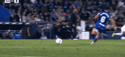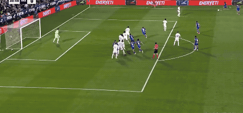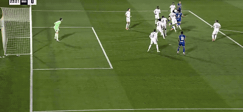 上半场补时阶段,皇马获得前场位置不错的任意球,久违的阿拉巴亲吻皮球,起脚射门,皮球的弧线相当诡异,门将注意力集中,将球扑出。