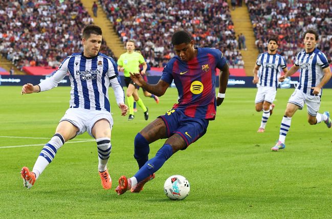 在2025-26赛季西甲第8轮,巴塞罗那客场对阵塞维利亚。拉什福德在上半场最后时刻推射破门,打入了西甲处子球!