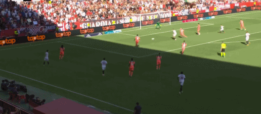 第36分钟,塞维利亚进攻,伊萨克-罗梅罗门前绝佳机会打偏