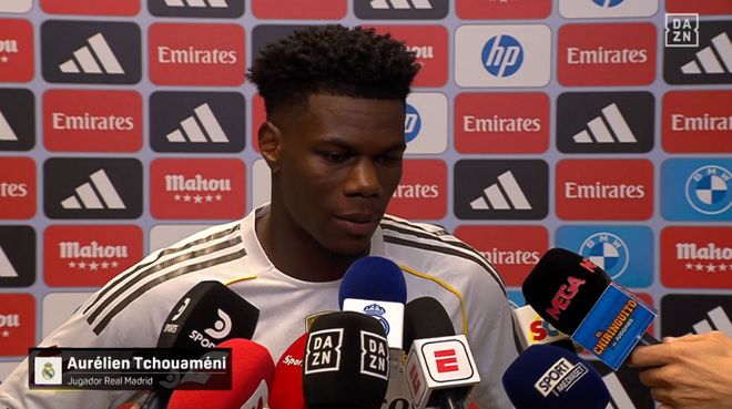 雷速体育10月27日讯 本赛季西甲联赛首场国家德比,皇马坐镇主场2-1击败巴萨。赛后,皇马中场楚阿梅尼在混合采访区接受了采访。