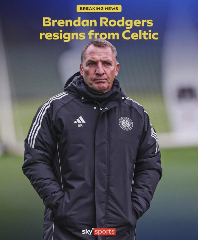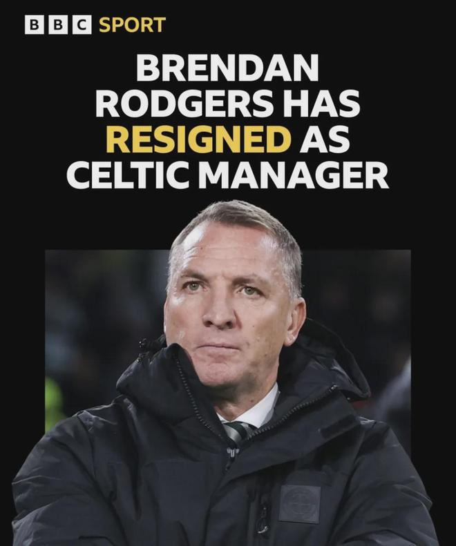 苏超豪门凯尔特人官方宣布,主帅布伦丹-罗杰斯正式辞职并离任。